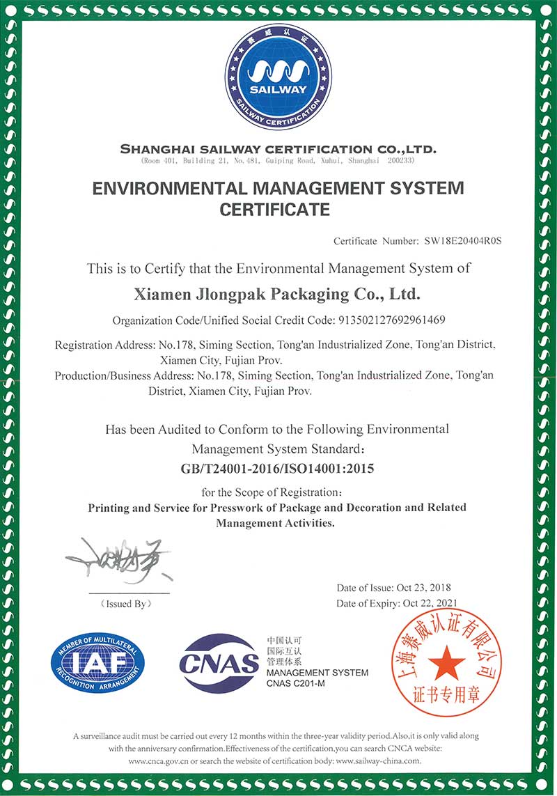 ENVIRONMENTAL MANAGEMENT SYSTEM CERTIFICATE